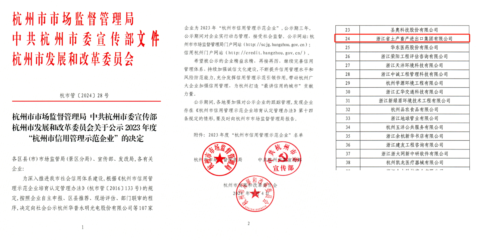 近日,2023年度“杭州市信用管理示范企業”認定名單正式公布,經過網上系統申報、第三方現場評估打分、社會公示等環節,浙江土畜成功入榜,榮獲20…