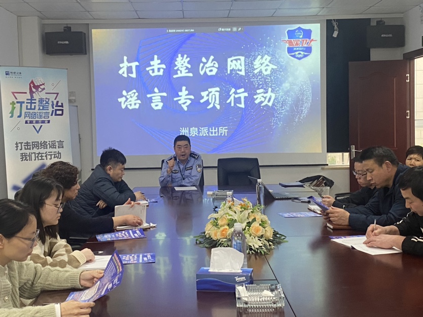 活動現場,洲泉派出所民警結合相關案例,通過“以案說法”方式,向員工科普網絡謠言的概念、種類、危害以及甄別方法,幫助員工樹立正確的網絡安全意識,并告誡員工造謠需承擔相應的法律責任,要堅決做到文明上網、安全上網、守法上網,自覺成為守護網絡安全的衛(wèi)士。