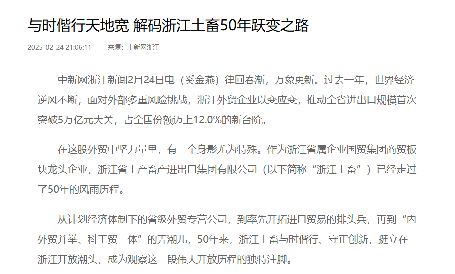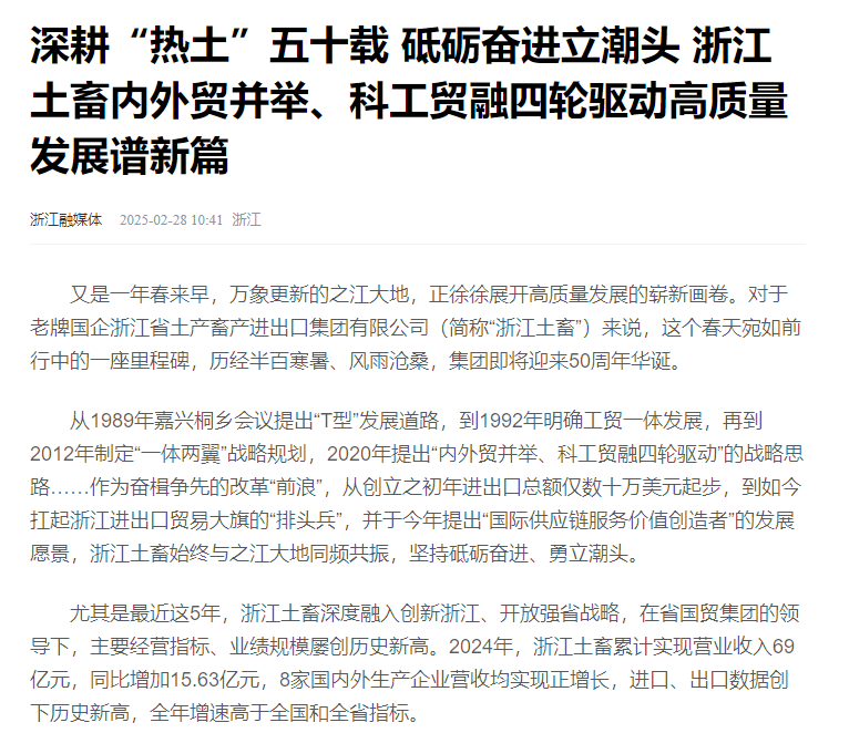 浙江土畜打造國際供應(yīng)鏈服務(wù)價值創(chuàng)造者