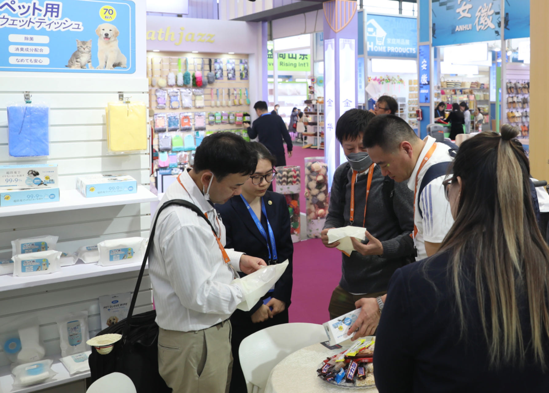 展會期間,公司領(lǐng)導(dǎo)林軍、魏濤濤等走訪各展位調(diào)研指導(dǎo),實(shí)地考察展位陳放效果、客戶接洽情況,鼓勵(lì)各參展人員把握機(jī)遇搶訂單。據(jù)統(tǒng)計(jì),本屆華交會期間公司展區(qū)累計(jì)接待海內(nèi)外采購商逾60位,其中搭載創(chuàng)新設(shè)計(jì)的功能型寵物用品受到采購商青睞,現(xiàn)場即達(dá)成10萬美元意向訂單。