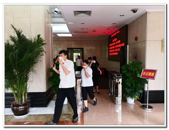 演習指令下達后,各小組迅速按照分工緊張有序地展開行動。滅火和疏散同時展開,滅火組大樓微型消防站隊員快速趕到火場迅速將火撲滅;大樓全體員工在各自部門安全員的引導下安全有序地疏散到指定地點整隊清點人數,整個疏散過程僅用時5分零8秒。