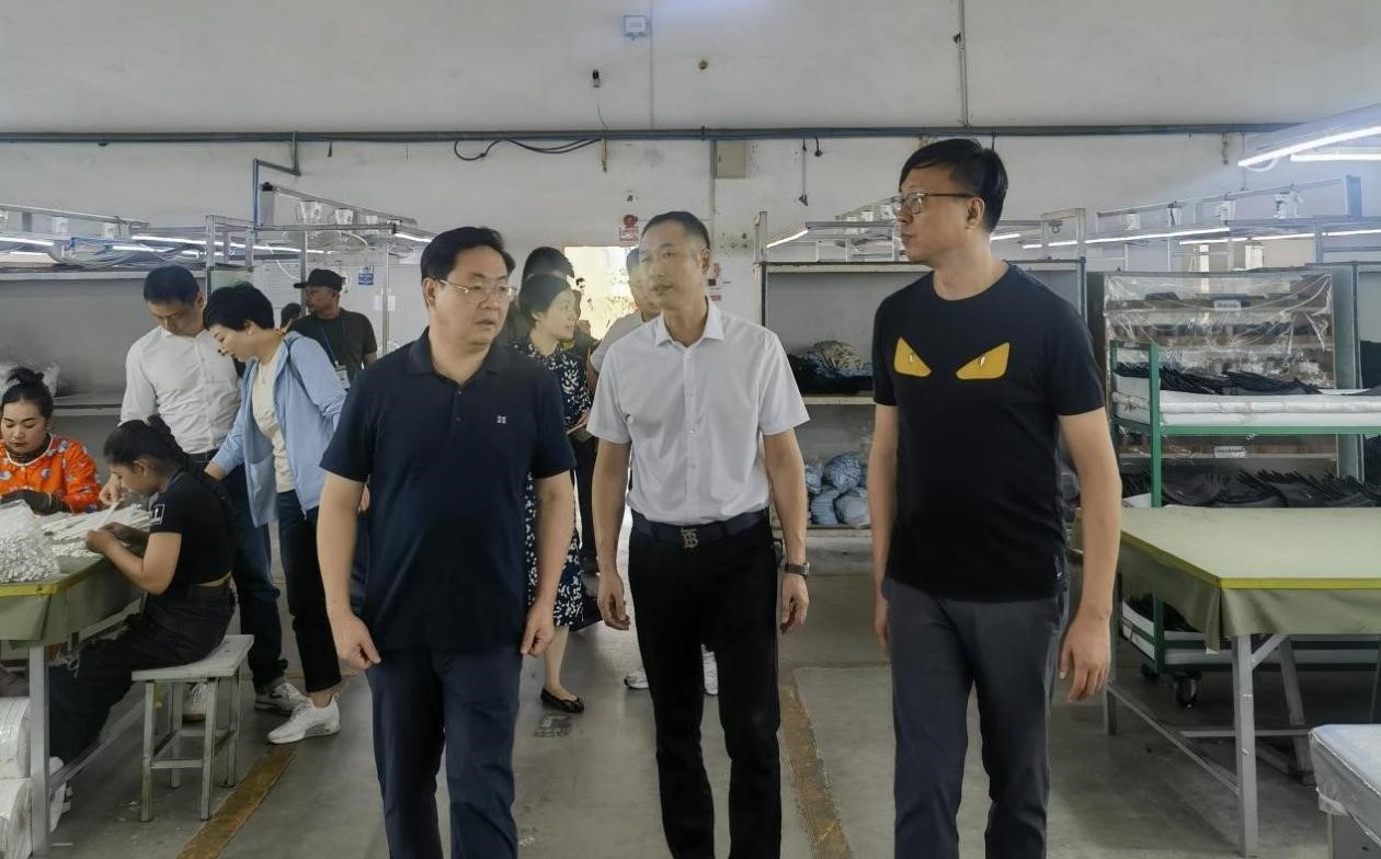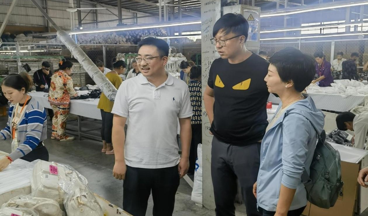 考察團一行深入箱包生產車間,了解浙江土畜箱包具體生產情況,重點聽取了浙江土畜在柬埔寨投資概況、浙江土畜箱包業務及柬埔寨惠元箱包有限公司項目推進情況等匯報,并與當地項目合作方進行了交流。